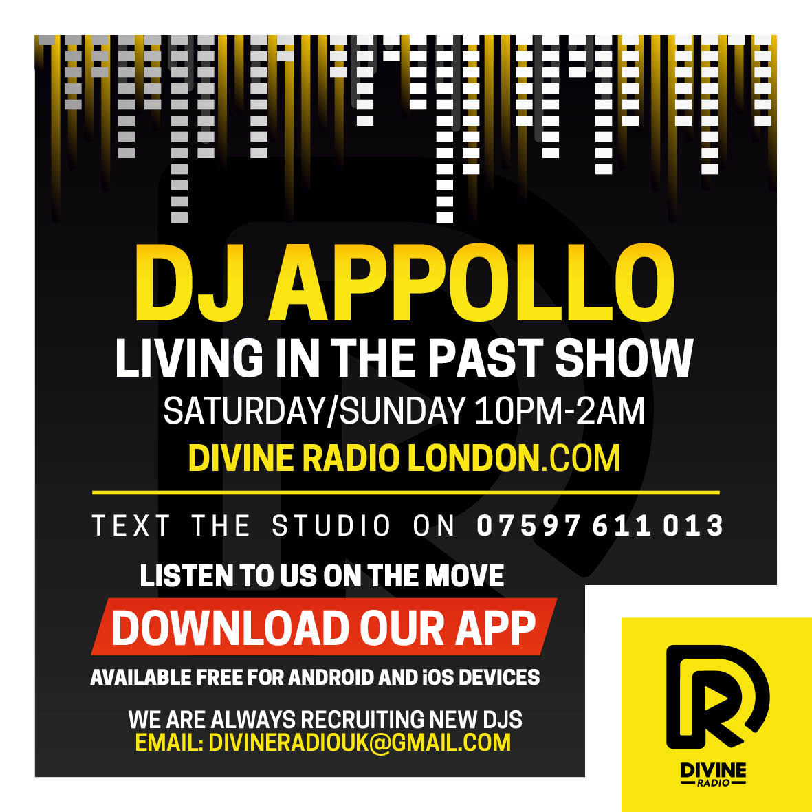 You can Listen to House and oldskool from Appollo. Playing a wide selection of dance music on our app and live on Divine Radio London. Divine Radio London is London’s premier station and mobile app for House and oldskool.