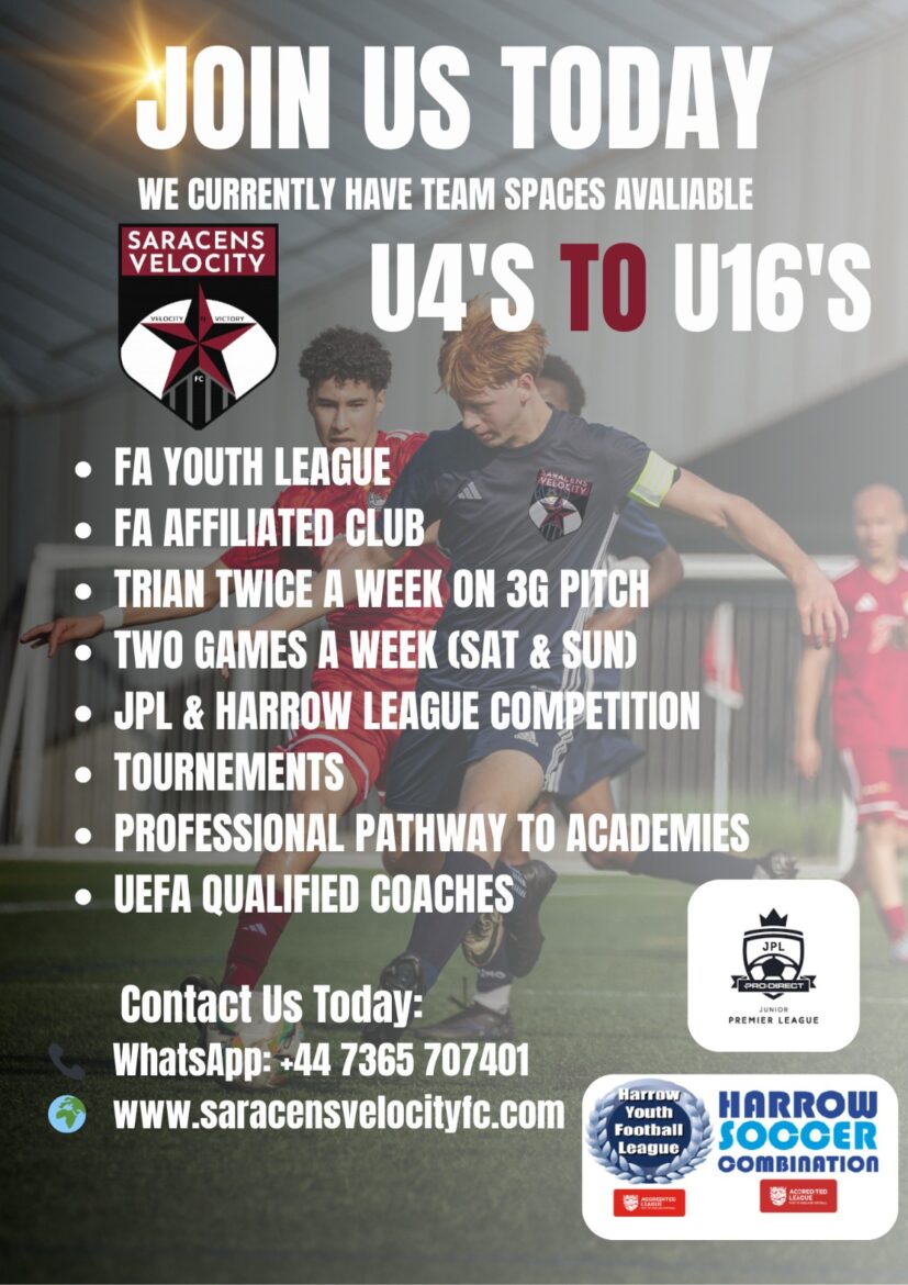 Divine Radio London is excited to team up with Saracens Velocity Football Academies as their official sponsor! This dynamic partnership brings together two powerhouses committed to championing youth, talent, and community. At Divine Radio, we believe in supporting young talent, and Saracens Velocity is the perfect platform for rising football talent to shine. Together, we’re creating opportunities, and making serious noise — both on the airwaves and on the pitch!